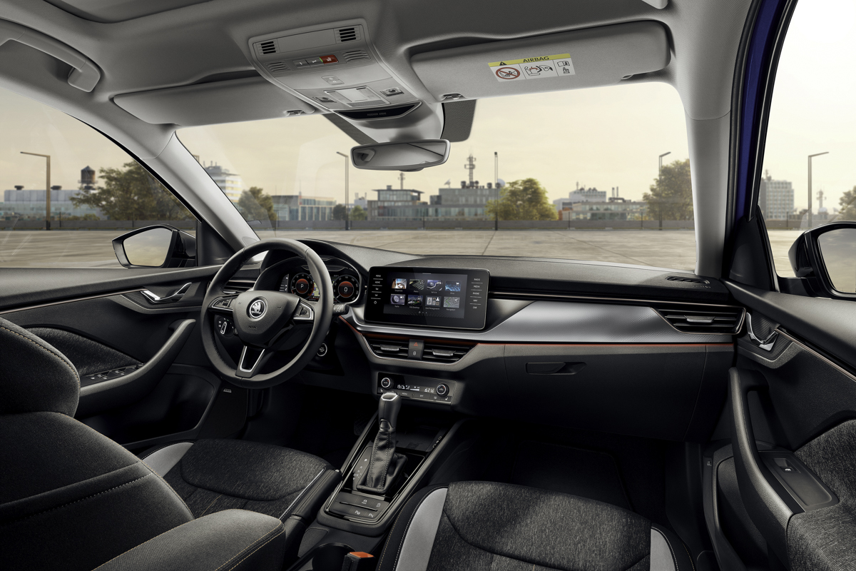 כניסה לתא הנוסעים מגלה אכן מרווח נאה מלפנים ומאחור. תא הנוסעים מרגיש נעים למדי לכך אחראיים הנדסת האנוש המוכחת, מסך המידע הגדול וגם תנוחת הנהיגה הטובה. למי שבחנייה של אשתו יושבת אותה הפלטפורמה, קל מאוד להרגיש כאן בבית. מצד שני קל להצביע על הנגיעות הקטנות שהופכות את תא הנוסעים של סקודה סקאלה לנעים יותר. ריפוד, הפס לרוחב הדשבורד, ההגה הבשרני והקטום. יותר מסופר-מיני, פחות מקומפקטית משפחתית יקרה.