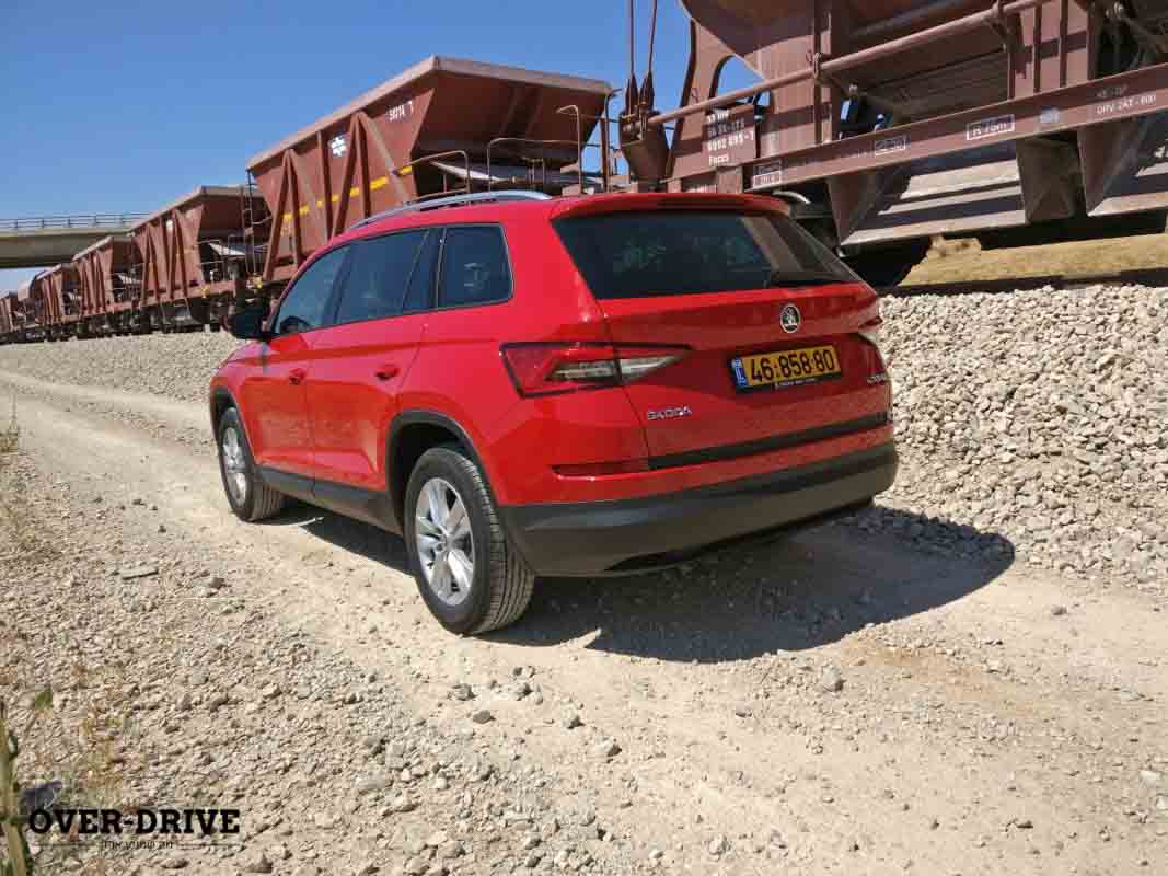חזרה למושב הנהג, תנוחת הנהיגה מוזרה בגלל גלגל הגה אופקי יחסית ואולי גם בגלל הגודל הפיזי. יציאה לרחובות העיר והקודיאק מרגיש מעט גמלוני ועצל, כאילו בלם היד החשמלי לא משוחרר לגמרי. בדיקה בדף הנתונים מראה נתון משקל עצמי של 1,589 ק״ג בגרסה שלנו, ויחד עם מצב נהיגה שמכוון לקומפורט ההרגשה שהקודיאק מעדיף נהיגה נינוחה ורגועה. למרות הספק של 150 כ״ס ושיא מומנט כבר ב-1,500 סל״ד, עושה רושם שהמנוע הזה קצת קטן על הקודיאק ואין את תחושת הזריזות שבדרך כלל מוכרת ממנועי ה-TSI של הקונצרן. לפחות נוחות הנסיעה בעיר הייתה ברובה טובה עם שיכוך מספק לרוב השברים ותחלואים שבדרך. גם בכביש המהיר הוא עדין מרגיש נוח ונעים, כשגם המושבים עצמם עוזרים, ושיוט ב-100 קמ״ש שם את המנוע על 2,000 סל״ד רגועים כשרק רעשים ממראות הצד ומעט מהגלגלים פוגעים בשקט ובנוחות הכלליים. אני מעביר את בורר מצבי הנהיגה לספורט וההבדל מורגש מיד. התיבה עוברת אוטומטית למצב S ודוושת הגז מתחדדת וגם ההגה מקבל יותר משקל. זה האחרון לא באמת מספק פידבק על הנעשה למטה אבל הוא מספיק מדויק ופרוגרסיבי גם כשקצב הנהיגה עולה. זה לא שהסקודה קודיאק נועד לנהיגה ספורטיבית, אבל הוא מציע שפע אחיזת כביש כשאם מגזימים החזית תדחוף קלות החוצה.