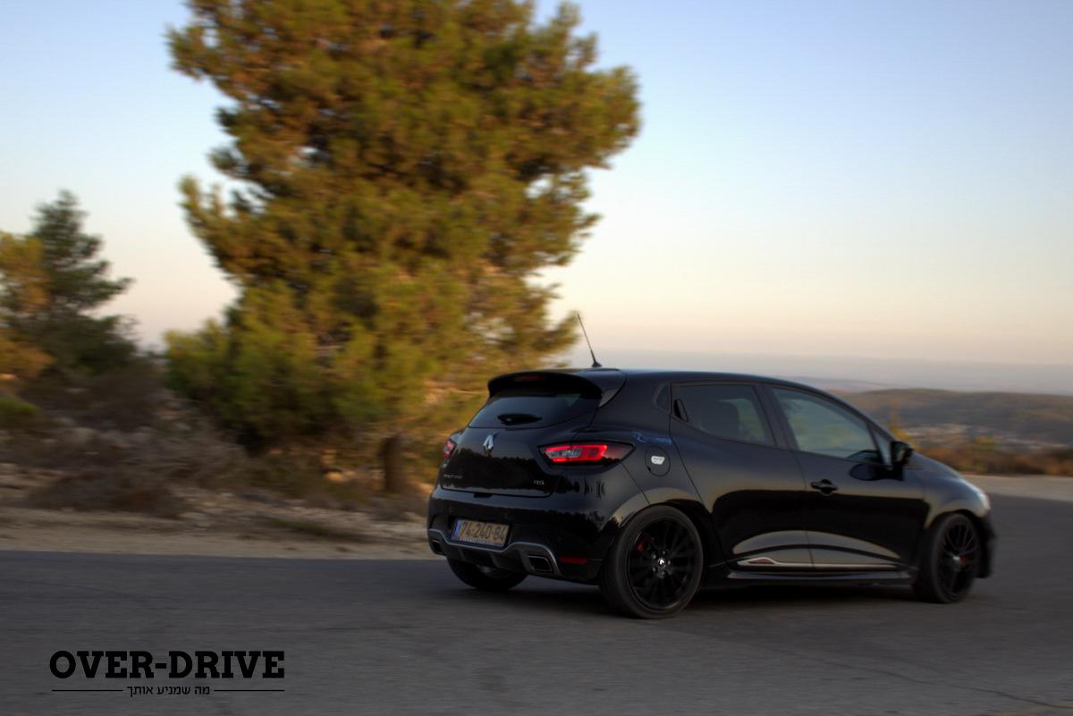 פיתול ראשון וכל המערכות (שלי, לא שלה) נכנסות לכוננות מוגברת. הדבר הראשון שבולט זה הטרן-אין החד והמהיר, המכונית הזו פשוט רוצה להיכנס לפניות, ורמת האחיזה שמתגלה אחר-כך גבוהה מאוד (בין היתר תודות לצמיגי מישלן פיילוט סופר-ספורט). כמעט בכל פניה הקליאו הרשימה, דרשה לכייל מחדש את הידיים להגה המהיר שלה (משקל סביר ודיוק טוב) ופשוט בקשה עוד. המתלים הנוקשים החזירו דיבידנדים ושמרו על מרכב מאוזן עם זוויות גלגול שטוחות וריסון מצוין. על הכיול הזה משלמים בכבישים משובשים, איתם הקליאו לא מתמודדת היטב, מקפצת ונעה על גבנוני האספלט.
