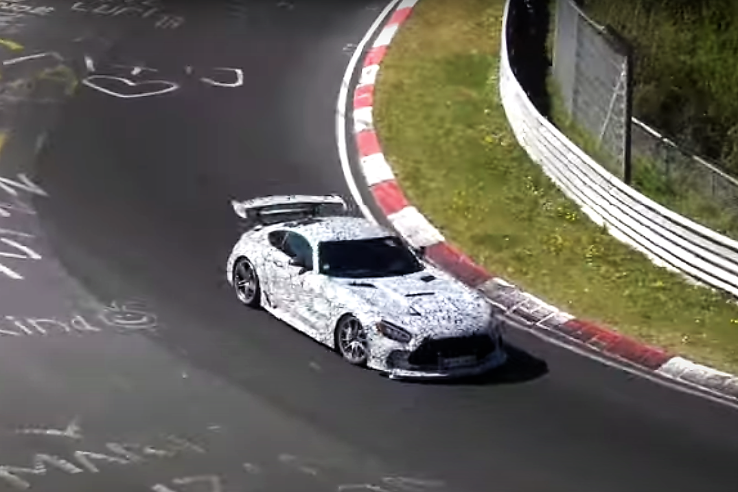 מרצדס AMG GT R 'בלאק' נתפסה במבחנים אחרונים בנורבורגרינג. הגרסה הקיצונית ביותר של הדגם אמורה להיות מוצגת במחצית השנייה של השנה. זהו סרטון ריגול עדכני וכנראה שהמכונית הזו קרובה מאוד לגרסה המוגמרת שלה. כן, הכנף האדירה הזו היא חלק מהשדרוג הויזואלי והאירודינאמי שמקבל הגרסה.