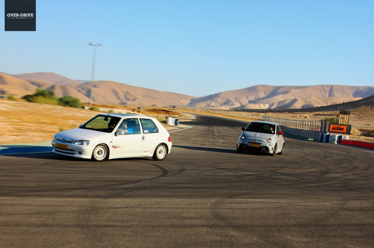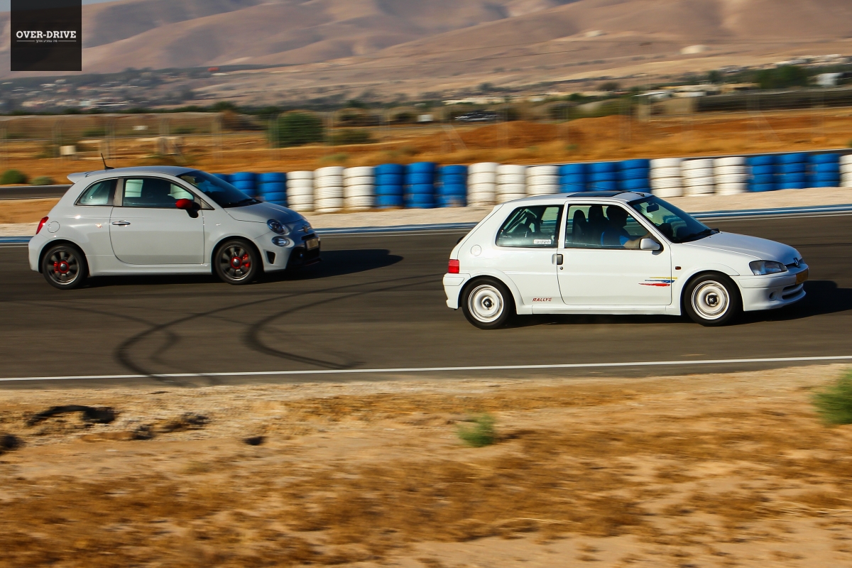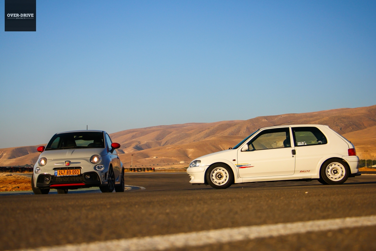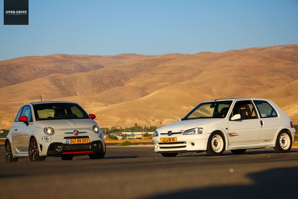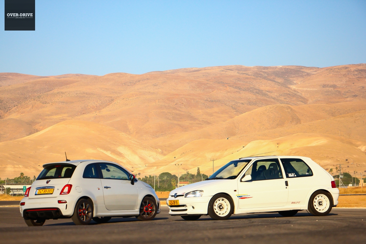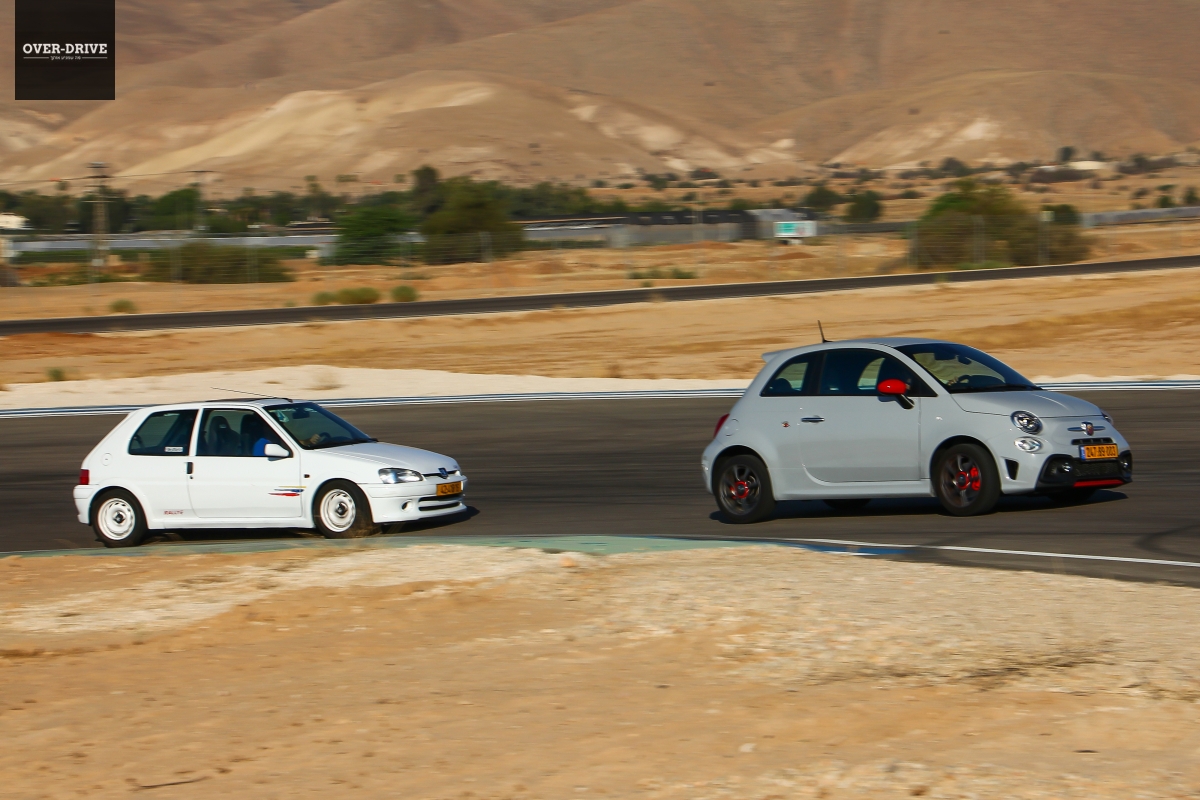 כאמור, זה לא מבחן השוואתי. לא צריך להתייצב במסלול בחום של 40 מעלות כדי לדעת שהאבארט מהירה יותר, נוחה יותר לשימוש יום יומי (תודה למזגן), ובאופן אירוני ומשעשע אפילו שימושית יותר. כשמעמידים אותן אחת ליד השניה שתיהן נראות צעצועיות. האבארט שופעת הספוילרים הרבה יותר מוחצנת ואלמלא המדבקות הצנועות הפיג'ו הלבנה נראית כמעט כמו מכונית מהשכרה. מה שמפתיע הוא שהגובה והקימורים של האבארט יוצרים אשליה אופטית שהיא מכונית גדולה יותר, למרות שבפועל הפיג'ו ארוכה ב-2 ס"מ ויש לה גם בסיס גלגלים ארוך ב-6 ס"מ.