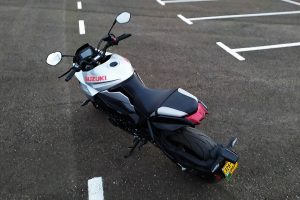 ברקע, מגרגר המנוע. ארבע בוכנות בשורה, שישה-עשר שסתומים וגל-זיזים עילי כפול. הכול מנגן בקצב סדור. תצורה שהפכה קלאסיקה. UJM קראו לזה פעם, הכללה גסה לכל מה שמגיע מיפן. היום, עם ארבע ציל' שרוצים להיות וי-טווינים, וי-טווינים שרוצים שיהיו להם ארבע ציל' ועוד תמורות שונות ומשונות, הקצב הסדור של הסוזוקי מרגיש לי כמו בית. לפני כמה דקות, יצאנו באווירת מלחמה מהבית, עם החלקות כוח מלאות זעם ושליטה בכבישי שדות צדדיים. עם מתן הכוח הצפוי אך עצמתי שלו ותנוחת הרכיבה השולטת, זה מהנה ומרגיע בו-זמנית.