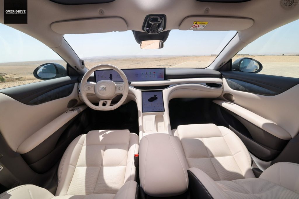 כמתבקש מהמיצוב מול המתחרות ההייטקיסטיות תא הנוסעים שופע מסכים: צמד מסכים משולב ללוח המחוונים ומערכת המולטימדיה בגודל של 26.3 אינץ', לצד מסך שליטה נוסף בגודל 10.5 אינץ' השוכב בקונסולה המרכזית. אל אלו מצטרפים העזרים המקובלים בז'אנר ממערך מצלמות היקפי לתצוגת 540 מעלות, משטחי טעינה אלחוטיים מקוררים לטלפונים הסלולריים, תאורת אוורי היקפית ועוד שלל גדג'טים.