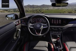 בתא הנוסעים פולקסווגן פולו GTI במהדורת 25 מתהדרת במושבי ספורט בציפוי עור שחור-אדום מחורר עם לוגו GTI תפור, עיטור דקורטיבי שחור מבריק עם כיתוב GTI אדום, ולוגו "One of 2500" על סף הדלת כדי לציין את מעמדו המוגבל למי שנוהג ברכב. רשימת האבזור כוללת כסטנדרט מערכות שהן אופציונליות בפולו GTI הסטנדרטית ובהן פנסי LED אדפטיביים ותאורת LED ומערכות הסיוע לנהג Travel Assist לנהיגה חצי אוטונומית שלא ברור למה צריך במכונית שנועדה שינהגו בה.