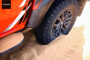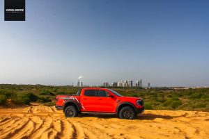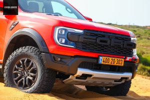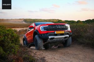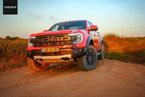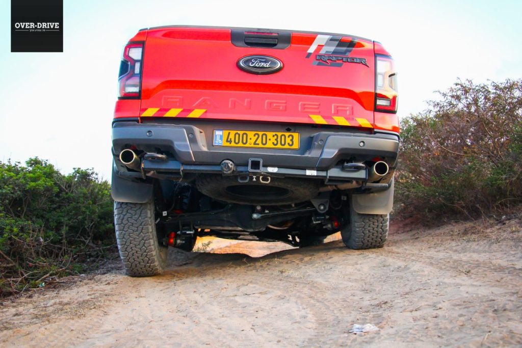 רגל ברצפה, מבט קדימה, נהמה מלפנים ושובל אבק מאחור. פורד ריינג'ר ראפטור טחן את שבילי הכורכר וחול הים בלי בעיה, קפלי הקרקע ורצף של דרופים שהיו שולחים אותי לכירופרקט בטנדרים אחרים נבלעים מתחת למתלי הריינג' בנונשלנטיות, כשגם במהירות גבוהות הגלגלים מסרבים לאבד מגע מהקרקע.  מצב באחה מאפשר לזנב לצאת בצורה מבוקרת ולתפוס אותו רגע לפני כישלון מפואר, כאילו אתם קרובי משפחה של נאסר אל עטיה. גם בשטח המנוע מספיק חזק, אבל לא מאיים. מאפשר לייצר מהירות אבל לא בפיקים שיובילו אתכם לנקודת האל חזור, כשנדמה שהמגבלות היחידות הן האומץ שלך ומד הדלק שצונח מהר עם צריכת דלק של כ-4 ק"מ לליטר.