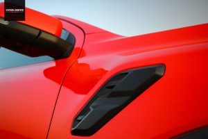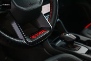 פורד לא פסחו גם על קוסמטיקה תואמת. מלפנים ישנה שבכה מוגדלת ומושחרת עם אותיות FORD במקום הסמל האובלי המוכר, מדבקות ראפטור קרביות, תפיחות וכונסי אוויר קרביים על מכסה המנוע, כנפוני פלסטיק בולטים מעל בתי הגלגלים, קשת ספורטיבית על הארגז בקצה מאחורי הקבינה ואי אפשר בלי צמד פתחי מפלט גדולים. בצבע הכתום היייחודי למשפחת הראפטור יש לריינג'ר הגבוה והמאסיבי המון נוכחות ויש גם מי שיתבלבלו בינו לבין ה-F150 הגדול ממנו משמעותית, ואין מחמאה גדולה מזו.