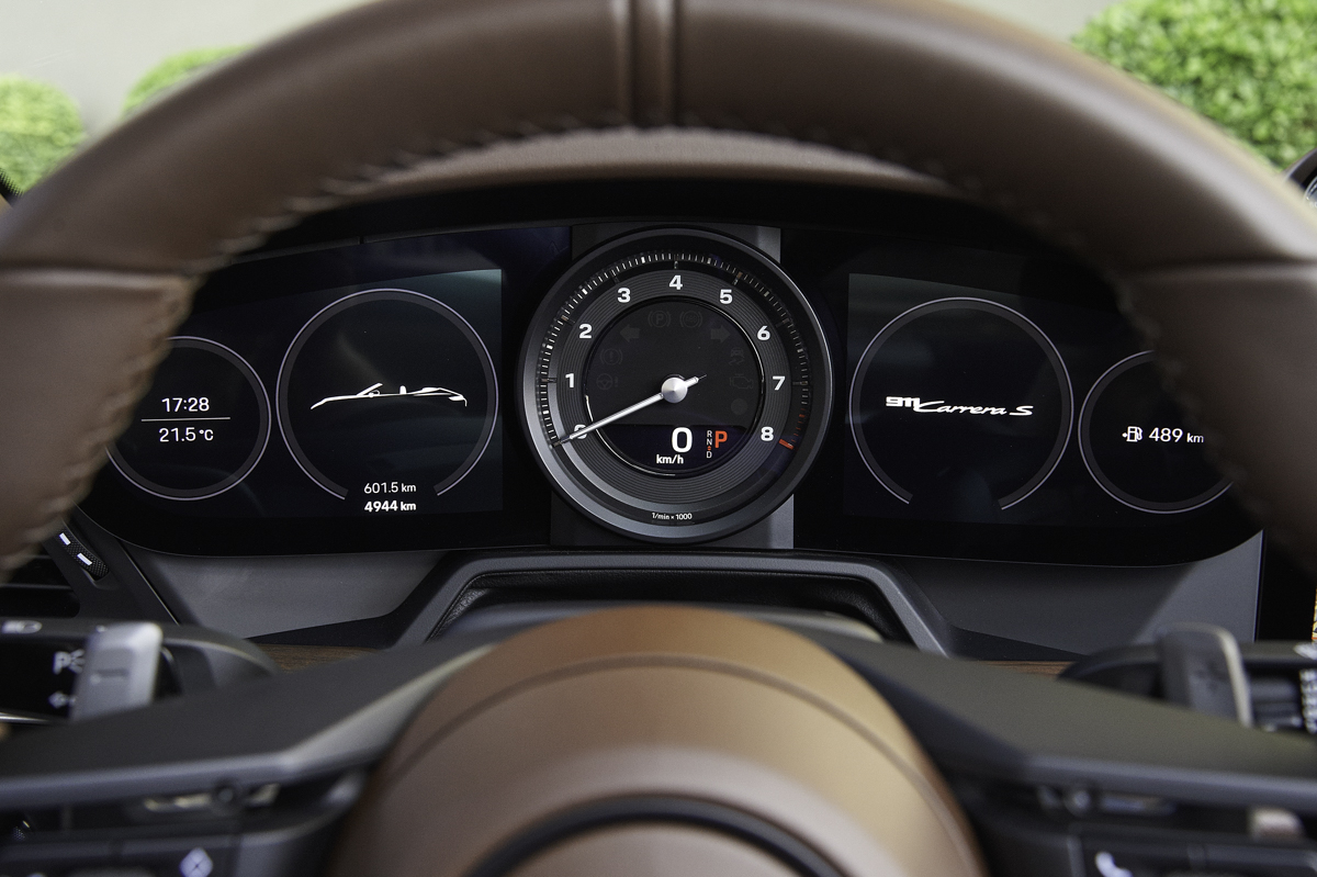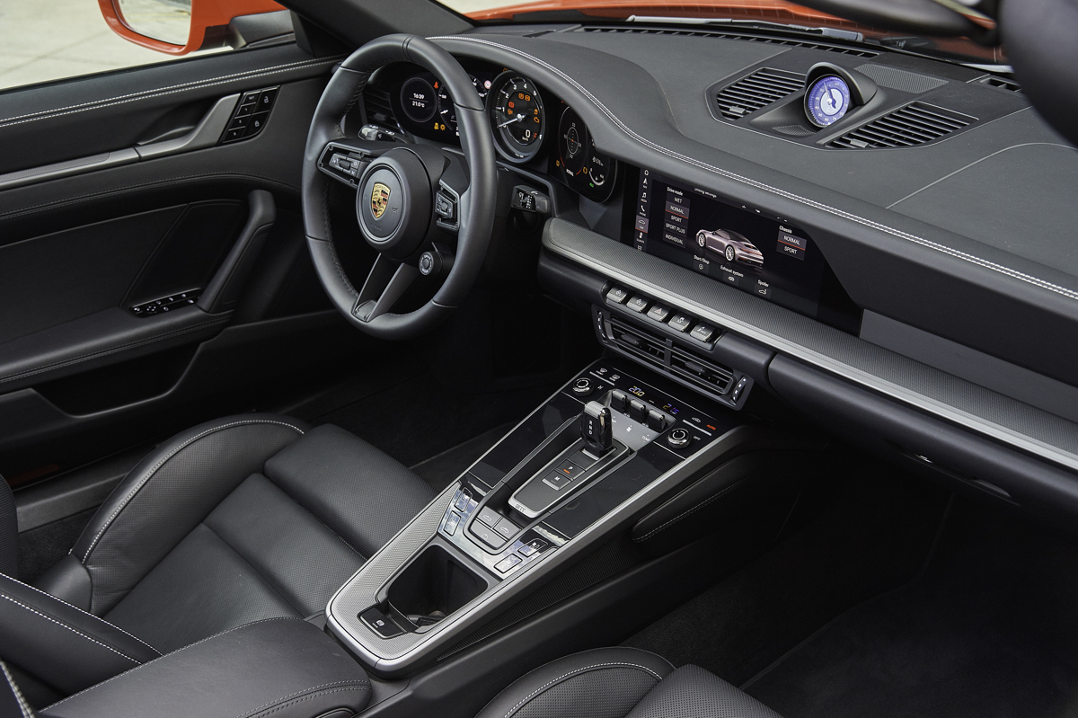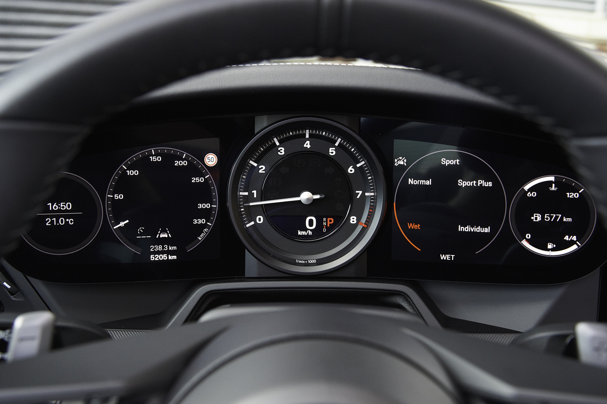 כשיושבים ב-911 החדשה התחושה מוכרת למדי. תנוחת הנהיגה, מיקום ההגה, היחס של אלו לדוושות מרגיש דומה לדור היוצא. וזו בשורה מצוינת. לעומת זאת, מה שרואים חדש לגמרי. יש כאן את חמשת המכוונים המוכרים עם אינטרפרטציה עדכנית ודיגיטלית. הקונסולה המרכזית נוכחת מאוד ומזכירה את זו שבדגמים עדכניים אחרים. מוט ההילוכים הפך למתג זעיר שמפקד על ה-PDK. דומה, אבל שונה ובעיקר סופר טכנולוגי. אלו הדברים שמביאים את ה-911 לעידן החדש, אבל הם לא אלו שהופכים אותה למהירה כל כך.