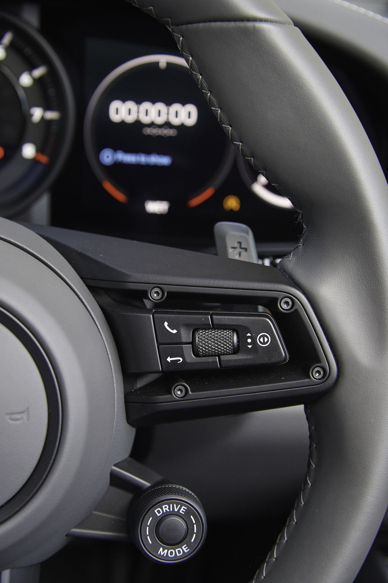 עוד אלמנט שזורח ככל שהזמן עובר הוא ההגה. על לחשושי צמיג אל קצות האצבעות כבר ויתרנו בעידן הזה. ההגה של הפורשה הזו מסביר למה התרגלנו גם לזה. הוא מהיר, משקלו טבעי ונכון והוא מדויק מאוד. חבר, את אלו יחד ותבין איך אתה צולף אתו אייפקס אחרי אייפקס. על המסלול ומחוצה לו. במקומות האלו השיוף הארוך של המכלולים האלו מתבטא ומורגש.