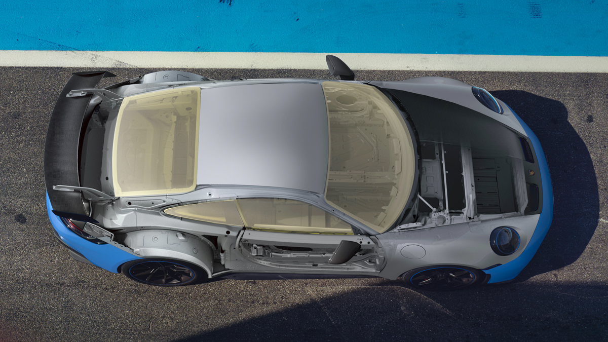 פורשה מספרים שהם השתמשו בחומרים קלים יותר – מכסה המנוע, הכנף האחורית והספוילר הקבוע מתחת לכנף – עשויים כאן מפלסטיק מחוזק סיבי פחמן. כל החלונות עשויים מזכוכית קלה יותר. יש עוד.