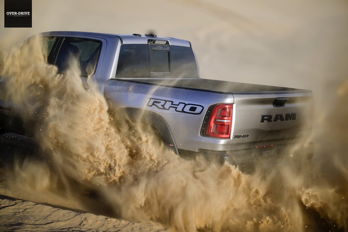 עם זאת, השימוש במנוע קטן יותר מתחת למכסה המנוע התפוח אפשר ל-RHO להשיל 80 ק"ג משמעותיים ממשקלו שרוכזו בחרטום, מה שאמור לתרום לא מעט להתנהגות. מעבר לכך, גם ללא מנוע V8 מסוגלת ראם להתגאות בביצועים מרשימים במיוחד עבור הממותה הזו שמסוגלת להגיע ל-96 קמ"ש (60 מייל לשעה) ב-4.6 שניות ול-160 קמ"ש ב-11.7 שניות. את המיאוץ הקלאסי לרבע מייל עובר ה-RHO ב-13.1 שניות כשהוא מסוגל לרשום מהירות מקסימלית של 190 קמ"ש. התמסורת של ראם 1500 RHO משלבת תיבת הילוכים אוטומטית בעלת שמונה יחסי העברה וטרנספר מחוזק מתוצרת בורג-וורנר הכולל יחס העברה נמוך של 2.64:1 לטובת יכולת הזחילה בשטח טכני, יחד עם דיפרנציאל אחורי ננעל.