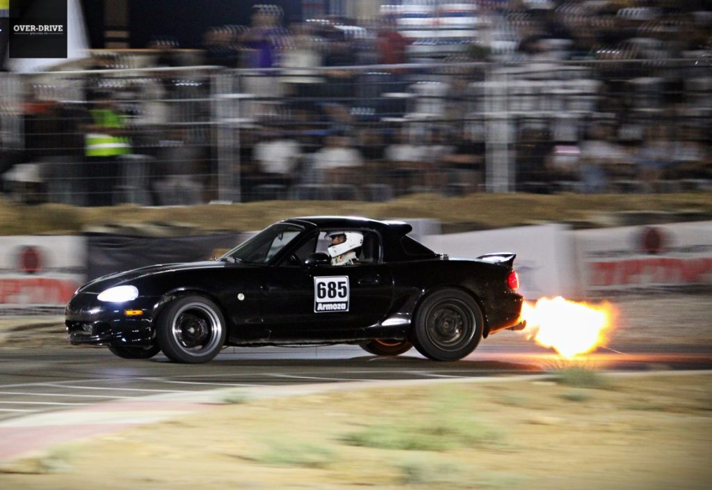התחרות נערכה בשעות הערב תחת מופע תאורה ייחודי שהוסיף לאווירת הקרנבל המוטורי. מעל 20 נהגים נרשמו לאירוע, וכל אחד מהם הציג יכולות מרשימות על המסלול. הקטגוריה הפתוחה כללה רכבים משופרים במיוחד, ביניהם סובארו BRZ עם מנוע V8 ומאזדה מיאטה NC עם מנוע V8 LS3 החמוש בסופרצ'ארג'ר על מנת לנשום. המנועים המשופרים וההתאמות הייחודיות של הרכבים הפכו את המרוצים לצבעוניים ומלאי אדרנלין.