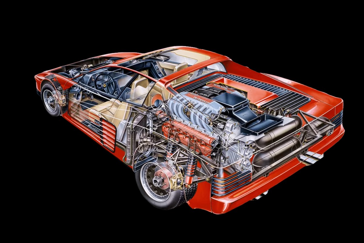 פרארי טסטהרוסה הביאה שנות ה-80 את שיא ההתפתחות המכאנית בעולם מכוניות הספורט, רגע לפני שהאלקטרוניקה החלה להתערב ולקחת את המושכות. את יכולות הכביש והמסלול שלתה הפיקה הטסטהרוסה על ידי שלדת צינות פלדה קשיחה בשילוב מתלי עצמות עצמה מלפנים ומאחור, שם גם היה סידור ייחודי של צמד בולמים לכל גלגל המחוברים לתת שלדה עצמאית. עזרי נהיגה? ABS? אפילו הגה כוח לא היה לה.