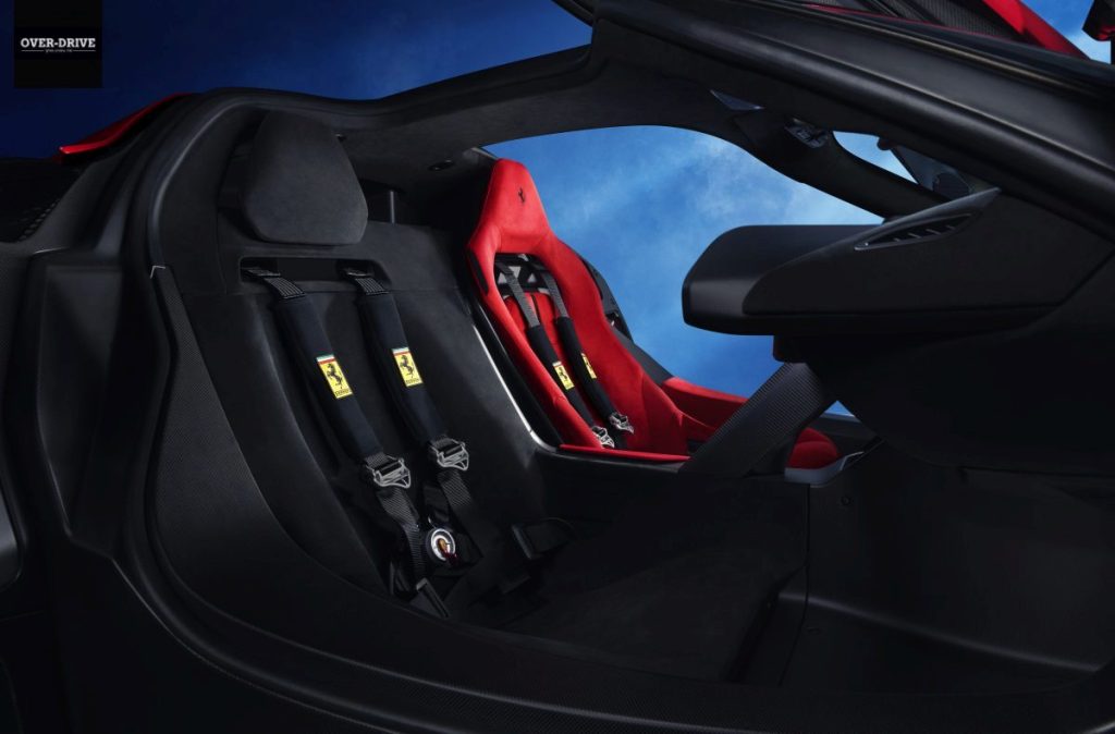 גישת ההארד קור ממשיכה גם לתא הנוסעים של ה-F80. המינימליזם שולט ולא תמצאו כאן יותר מידי הידור, אבל כן הרבה סיבי פחמן, בלי מסכי מולטימדיה אבל כן מסכים מינימליים לבקרת האקלים וברגים חשופים בשביל להעצים את התחושה הרייסרית הממוקדת (וגם כי חוסכים ככה כמה גרמים). מה שמחזק את הגישה הזו עוד יותר הוא סידור המושבים שנועד להעניק תחושה של מכונית לנהג בלבד, לא רק מבחינת עיצוב הקוקפיט הממוקד אך ורק בו. לנהג ישנו כמובן מושב באקט ספורטיבי מהשורה הראשונה עם חגורת בטיחות בעלת חמש נקודות עיגון, כשלצידו יש מושב נוסף שהוא לא ממד מושב אלא מעניין דרגש מקובע בעל ריפוד מינימליסטי שנועד לנוסע מזדמן עם שלא ממש סובל מבעיות גב.