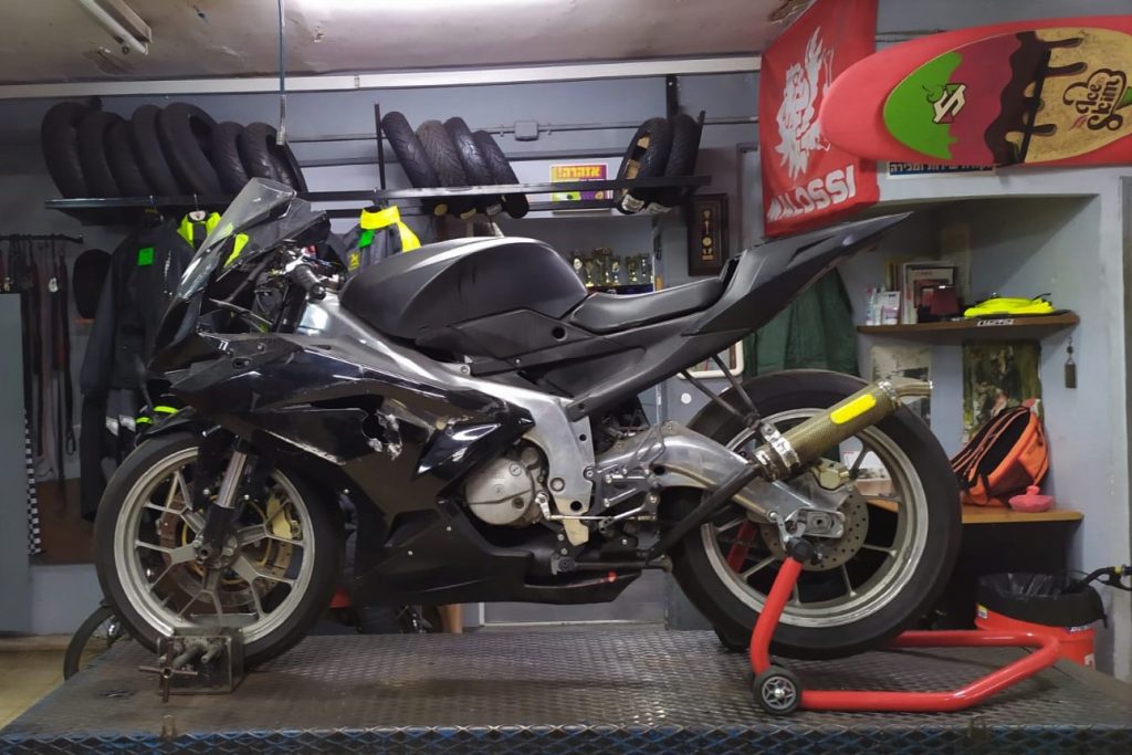 האפריליה הזה, עבר חיים לא קלים. זה מתגלה בכל נגיעה או מבט בו. אחד הדברים שהפריעו ברכיבת הבכורה היו קליפ-און ורגלית עקומים בצידו השמאלי של האופנוע. זכר לנפילה לא נעימה ככל הנראה. עד סיבוב הזמנת החלפים הבא, עם רכיבים ייעודים, מכורסמים ואיכותיים, הותקנו קליפ-אונים וריר-סט פשוטים. רק בכדי לייצר תנוחת רכיבה סבירה. עכשיו צריך לחכות ליום מסלול ולנער אותו קצת. לאחר מכן יותקנו חלקי המנוע שהוזמנו עבורו – אלו אמורים להביא את המנוע לקצה הגבוה שלו. אחר-כך מתלים. ואח"כ עוד ועוד. הרשימה רק הולכת ומתארכת.