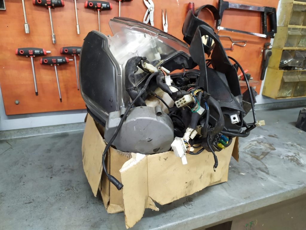 זה נראה או נשמע זניח, אבל כמות החלקים, קטנים כגדולים אדירה, והחיסכון במשקל אדיר. הקופסה אליה נאספו רוב החלקים שוקלת 17.2 ק"ג עכשיו. זה פשוט מטורף. צריך לזכור שבאמת לא נשאר כלום על האפריליה. אין מצבר, אין מתגים, אין כלום. הצמיגים הפחיתו כ-2 ק"ג יחדיו ולקראת הדיווח הבא נבצע שקילה יבשה מדויקת של האפריליה הקליל. משקל היעד מדבר על 90 ק"ג. זה לא יהיה פשוט מצד אחד. מצד שני נותרו לא מעט אוזניים מיותרות לאורך האופנוע. גם שלדת הזנב ושלדת הפיירינג הקדמי מסתירות בתוכן עוד פוטנציאל גילוח.
