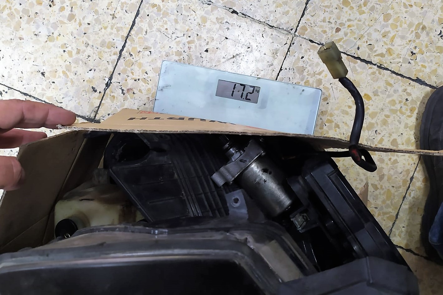 זה נראה או נשמע זניח, אבל כמות החלקים, קטנים כגדולים אדירה, והחיסכון במשקל אדיר. הקופסה אליה נאספו רוב החלקים שוקלת 17.2 ק"ג עכשיו. זה פשוט מטורף. צריך לזכור שבאמת לא נשאר כלום על האפריליה. אין מצבר, אין מתגים, אין כלום. הצמיגים הפחיתו כ-2 ק"ג יחדיו ולקראת הדיווח הבא נבצע שקילה יבשה מדויקת של האפריליה הקליל. משקל היעד מדבר על 90 ק"ג. זה לא יהיה פשוט מצד אחד. מצד שני נותרו לא מעט אוזניים מיותרות לאורך האופנוע. גם שלדת הזנב ושלדת הפיירינג הקדמי מסתירות בתוכן עוד פוטנציאל גילוח.
