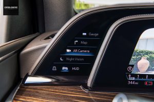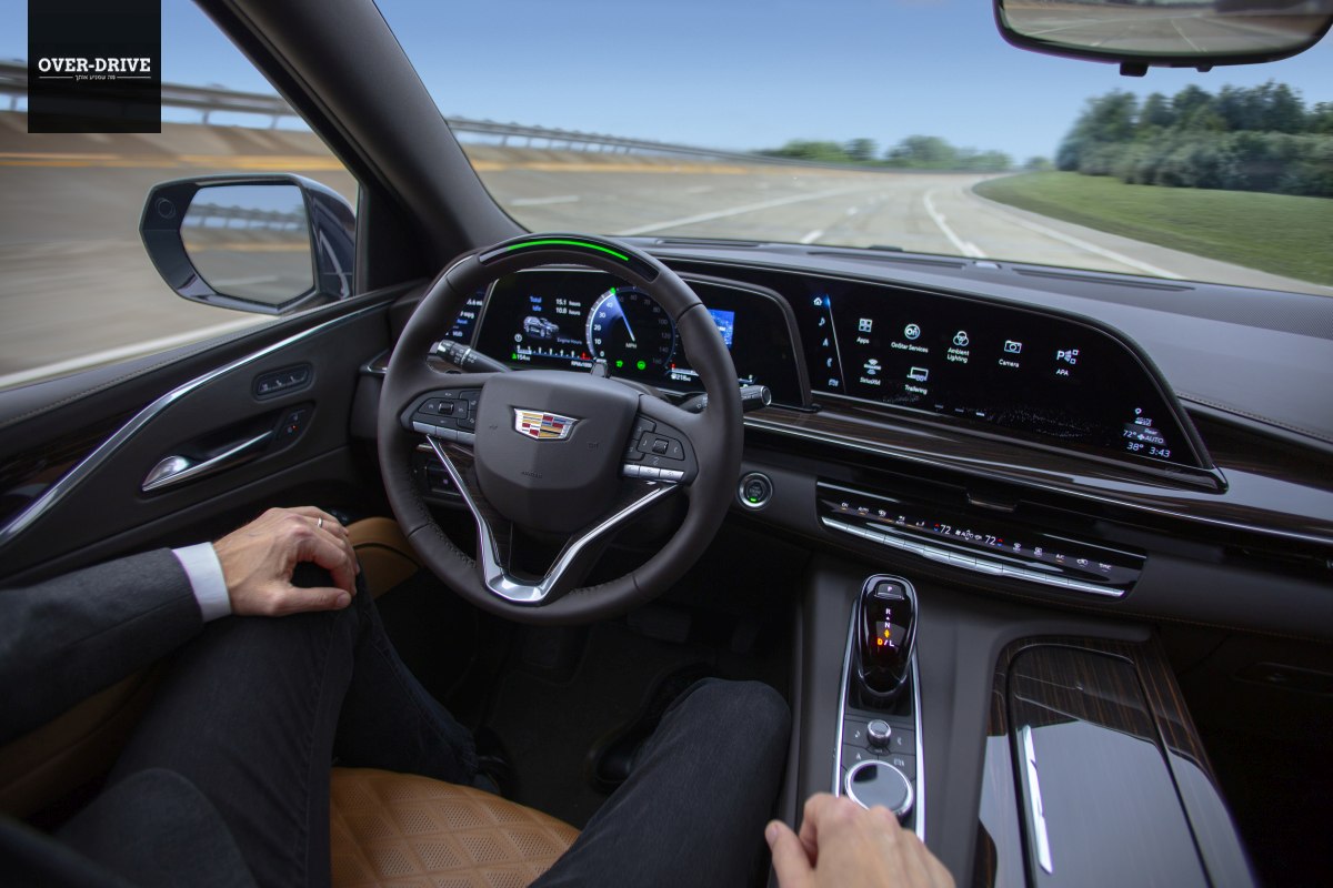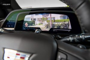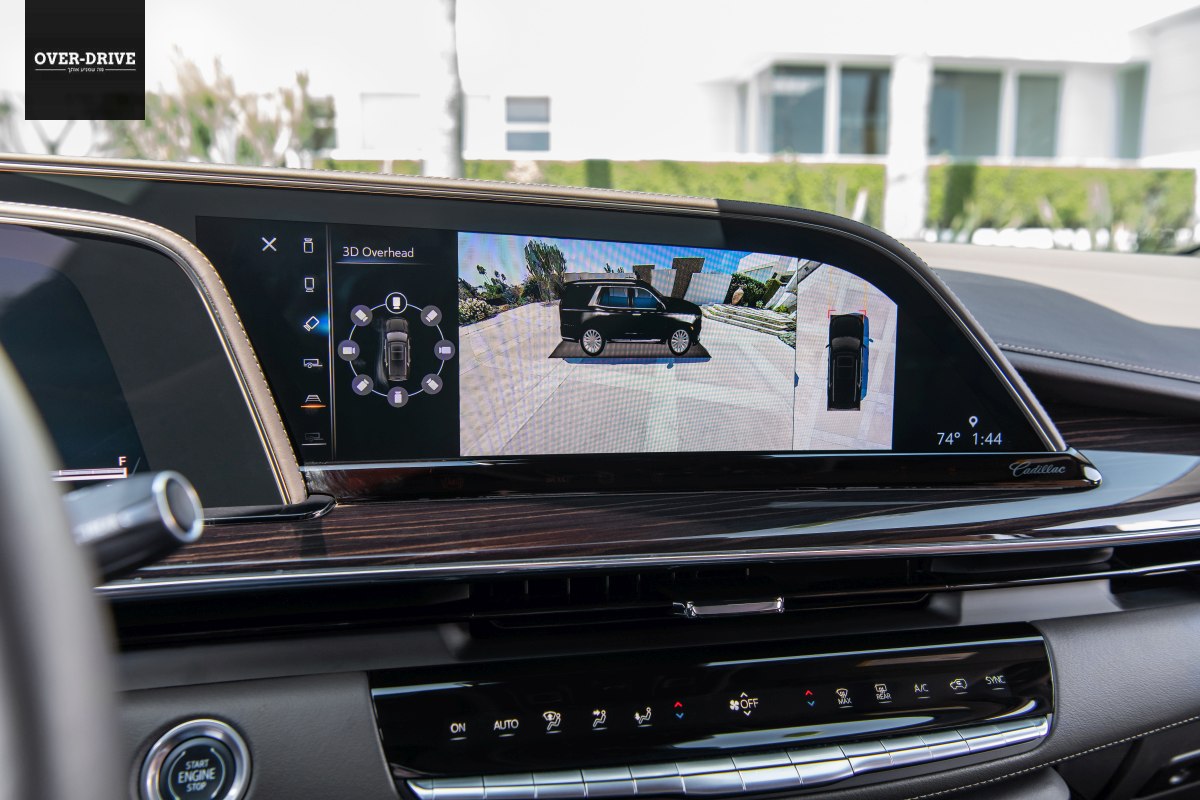 מלפנים זה בכלל מרגיש כאילו קאדילק הלכו עד הסוף ואז המשיכו עוד קצת. בוא נדבר רגע על תשומת לב לפרטים ועל טכנולוגיה. כשפותחים את אחת הדלתות כאן, מדרגת הצד מנחשת אותנו ונפתחת אוטומטית באלגנטיות. ומדובר במדרגת צד חסונה מאוד, כזו ששלושה אנשי FBI חסונים יכולים לקפץ עליה מבלי שזו תתרשם. סגירת הדלתות ואותה מדרגה נעלמת ונצמדת חרש באלגנטיות שלא אופיינית למבנים חסונים כאלו. להבדיל אלף אלפי הבדלות גם הצג החולש על תא הנוסעים מלפניו משלב ממדים אדירים, טכנולוגיה ואלגנטיות. זהו מסך בטכנולוגית O-LED עם רזולוציה של 8K בקוטר 38 אינץ'. הוא חכם, חד ומהיר כמו שהוא נשמע. והוא מנוח עם עיצוב ייחודי לקאדילק, עם כמה שכבות, והכיתובים הנכונים והאלגנטיים שנותנים טאץ' קלאסי.
