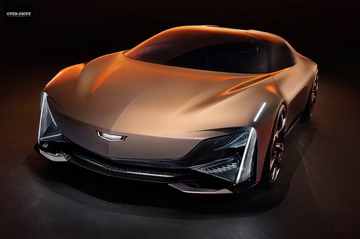 קאדילאק OV היא מכונית קופה גדולה שהשימוש בפלטפורמה חשמלית אפשר למעצבים ליצור שמשה קדמית משופעת וחרטום קצר יחסית, כאשר בחרטום משולבת תאורת לד ראשית המשולבת כחלק ממעטה קריסטלי מפוסל המשמש כחזית הרכב. החלק האחורי מציג קורה משופעת ועבה ויחידות תאורה אחוריות מסגנון הסלסטיק, עם חלון אחורי מפוצל כקריצה לדגמי שנות ה-30 (או לקורבט סטינגריי, אם תרצו).  ואם כבר תאורה, אז בקאדילאק לוקחים צעד קדימה את אופנת הסמלים המוארים ומוסיפים אותה גם לחישוקים.
