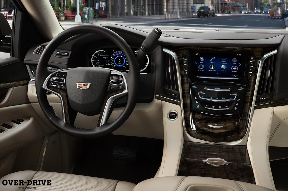 קאדילק אסקלייד הוא רכב מפואר, מבחוץ אי אפשר להתעלם ממנו, לא מה"סנפיר" האיקוני בתאורת האחורית שמורכב מ-142 נורות לד ובטח שלא מהגודל שלו. מבפנים הרגשת הפאר ממשיכה שיושבים מוקפים בעור נאפה תפור איכותי, עץ אמיתי ומערכת Active Noise של BOSE. יש גם קונסולה מרכזית 12" מסך שליטה 8" לנהג, מסכי 8" ו 9" עם שלטים, אוזניות אלחוטיות וכניסות USBו- HDMI בשורות המושבים השנייה והשלישית, מקרר ועוד ועוד.