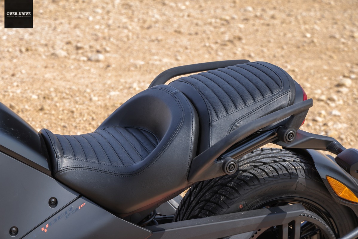 לכאורה זהו שילוב שאמור לייצר התנהגות כביש מעוררת חשש, שלא לומר מסוכנת ומעייפת. גם הספיידר וגם הרייקר, מגיעים עם מערכת בקרת יציבות ששומרת על הרוכב מהשטויות שהוא עלול לבצע. כניסה מהירה מדי לפניה ואפילו הרמת גלגל פנימי קדמי, ובקרת המשיכה מטפלת בכוח המנוע, בקרת היציבות דואגת למשוך לכיוון הנכון וזהו. אולי תרגיש מעט תת היגוי, אולי נגיעת היגוי יתר במהירות נמוכה. זה הכל. כוון ושכח. העובדה שאין כאן מנופים או ידיות לתפעל הופכת את הרכיבה לפשוטה מאוד עבור כל אחד. ידית גז, בלם ברגל וזהו. סע לשלום.