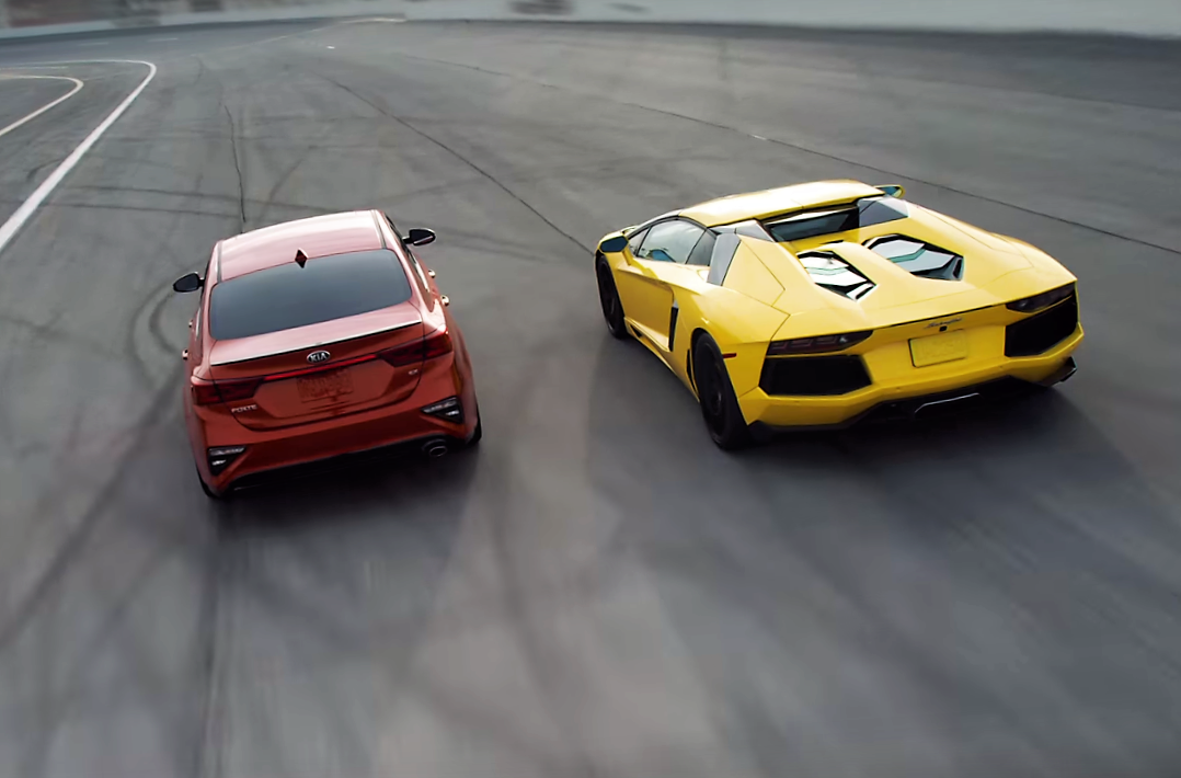 קיה פורטה מול למבורגיני אוונטדור – ראש בראש על המסלול זה לא משהו שרואים כל יום.