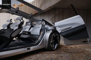 הלוק העתידני של קרייזלר האלסיון מגיע בזכות שילוב של שמשה קדמית ענקית הגולשת אל תוך החרטום, חופת תא נוסעים בצורת טיפה וקווי גוף מעוגלים לצד אלמנטים שהפכו כבר שגרתיים כמו מצלמות במקום מראות צד וידיות דלתות נסתרות. תצורת הדלתות היא הייחודית ומשלבת דלתות התאבדות אחוריות ללא קורה מרכזית, כאשר חלקו העליון של הגג מעל הנוסעים מלפנים מאחור נפתח כלפי מעלה בתצורת "כנפי שחף". פתיחת הדלתות חושפת תא נוסעים מינימליסטי שבו ארבע מושבים ואין הרבה מלבד הגה רבוע ומסך 15.6 אינץ' מסתובב במרכז הקוקפיט. לוח המחוונים הוא למעשה תצוגת HUD עילית על פני פאנל שקוף המוצב לרוחב הקוקפיט מלפנים. בקרייזלר גם מדגישים ש-95% מדיפוני תא הנוסעים עשויים מחומרים ממוחזרים.