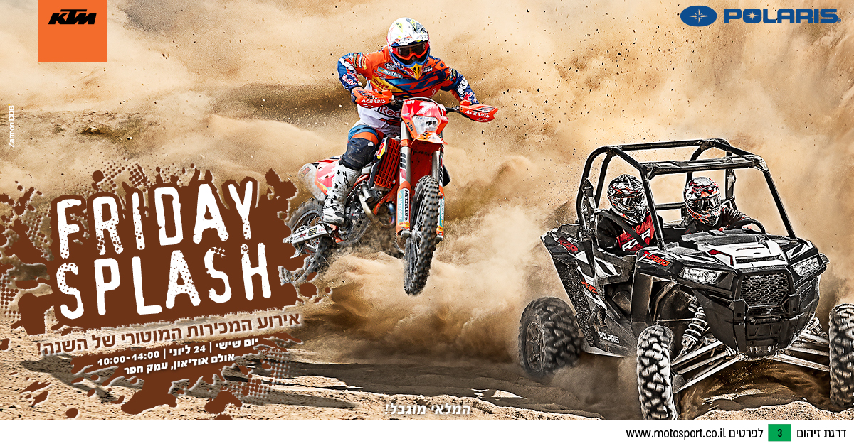 ק.ט.מ ופולאריס החליטו לפתוח את עונת הקיץ הרשמית באירוע מכירות, "פריידיי ספלאש". במסגרת האירוע, שייערך ביום שישי הקרוב (24 ליוני), יוצעו הכלים של המותגים האמורים בתנאי רכישה חד-פעמיים. אותם תנאי רכישה, יינתנו בכל סוכנויות החברה ביום האירוע.