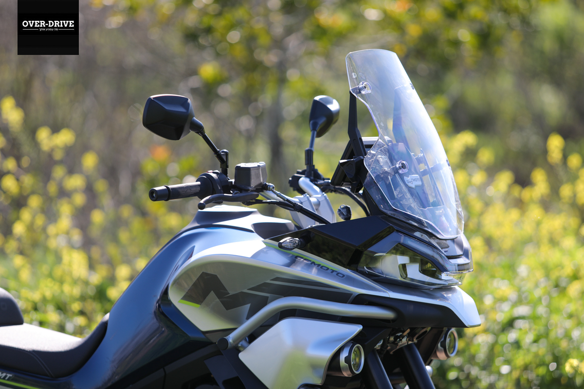 CF מוטו MT800 הוא אופנוע אדוונצ'ר בנפח בינוני אם כן, בדיוק מה שכל העולם מבקש לקנות בעידן הזה. הגרסה שהגיעה לידנו מצוידת בחישוק 19 אינץ' מלפנים ו-17 אינץ' מאחור עם צמיגי כביש בלי שום רמז הרפתקנות. יש לו גרסה מאובזרת יותר הכוללת גם ארגזים, מיגונים וחישוקי שפיצים. זו, לצערי, לא זמינה למבחן, לא נורא. גם הגרסה הזו, לא בדיוק דלה באבזור עם שני מצבי רכיבה, בקרת שיוט, ABS להטיה, מסך TFT צבעוני בגודל 5 אינץ', פנסי ערפל, שני שקעי טעינה ועוד ועוד.