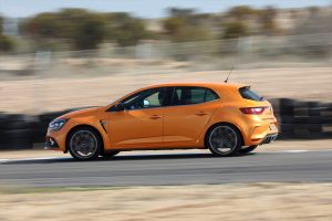 לורן אמנם לא ציטט מספרים אבסולוטיים אבל טוען שמגאן RS החדשה לא מייצרת כוח הצמדה שלילי, זאת אומרת שהיא מאוזנת בהיבט של אפקט ההצמדה או ההתנתקות מהקרקע עם התגברות המהירות. במילים אחרות מגאן RS החדשה לא מייצרת ליפט ולא הצמדה. בקטגורית המשפחתיות החמות רק ההונדה הצליחה להשיג זאת הרנו מגאן מגיעה לנתון ללא צורך בכנף ענקית ובולטת מאחור. מעבר למרכב המשפחתי השימושי יותר המגאן מגיעה לישראל עם תיבת EDC כפולת מצמדים, כאשר בחו״ל ניתן לבחור גם בתיבה ידנית. זהו עוד סממן לכיוון אליו רנו ספורט כיוונו כשפיתחו אותה. ״בסופו של דבר מעל 90% מרוכשי הרכב ישתמשו בו ליומיום, ואחוז קטן מאוד מהק״מ יהיה על מסלולי המירוצים.״ מספר ג׳ין.