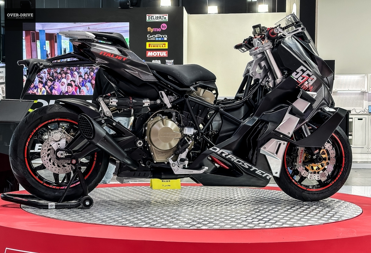 איטלג'ט שקמה לתחיה לפני מספר שנים החליטה שגם היא רוצה להחזיק את האיטלקים למשחק והציגה במילאנו סופר קטנוע משלה. כדרכה, מדובר ביצירה לא שגרתית בעלת עיצוב ראדיקלי, מפרט מעורר ולא מעט טכנולוגיה מעניינת. הקטנוע החדש נקרא דראגסטר 559 Twin וכבר משמו ניתן להבין איזה מנוע שוכן בשלדת הצינורות החשופה שלו.