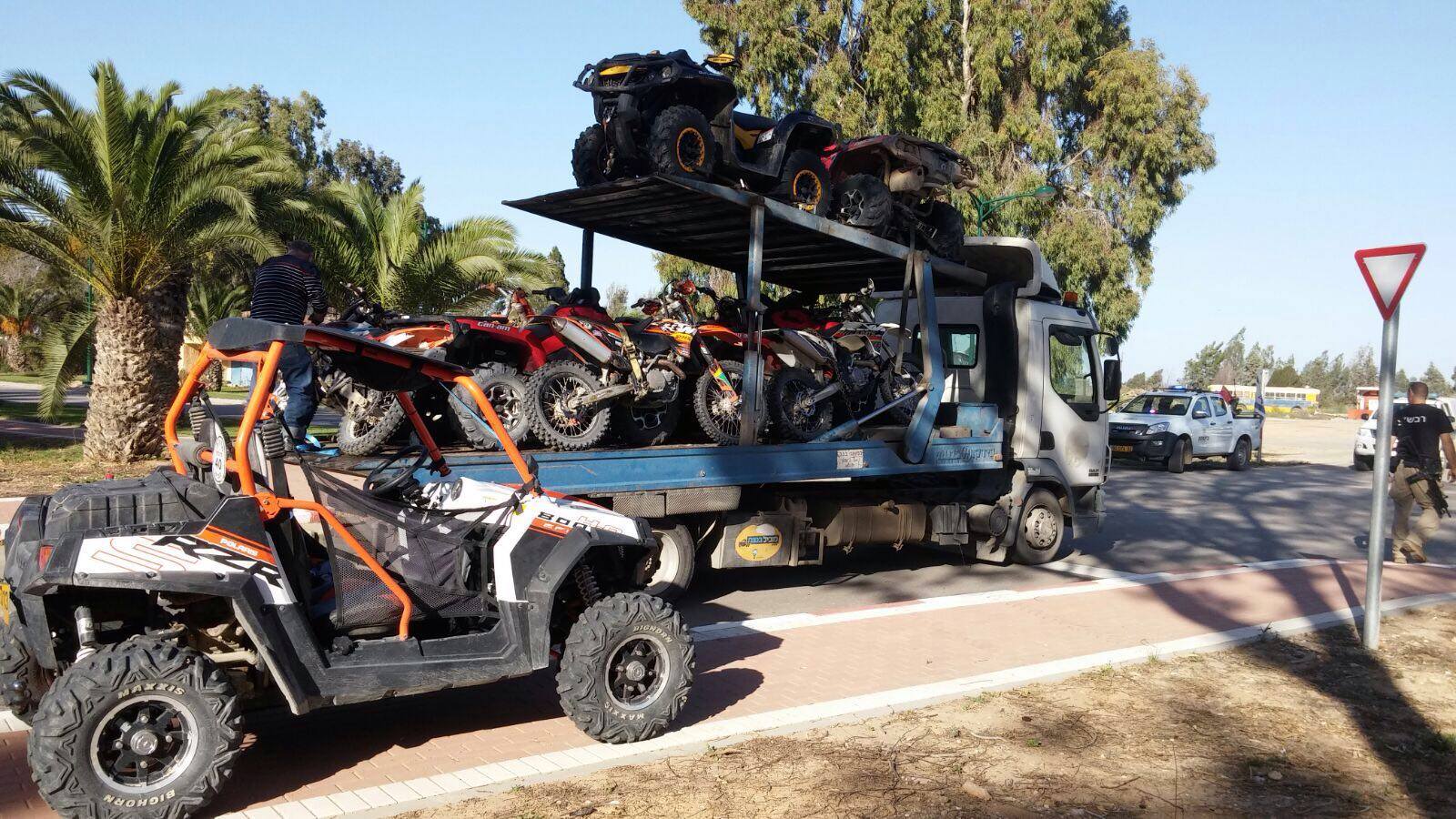 הפעילות האמורה, שכללה שיתוף של מספר גופים כאמור, החרימה המשטרה 6 אופנועי שטח (מהתמונות נראה שמדובר בעיקר ב-ק.ט.מ) וארבעה טרקטורונים (מהתמונות נראה כי מדובר בעיקר בכלים מתוצרת קאן-אם).