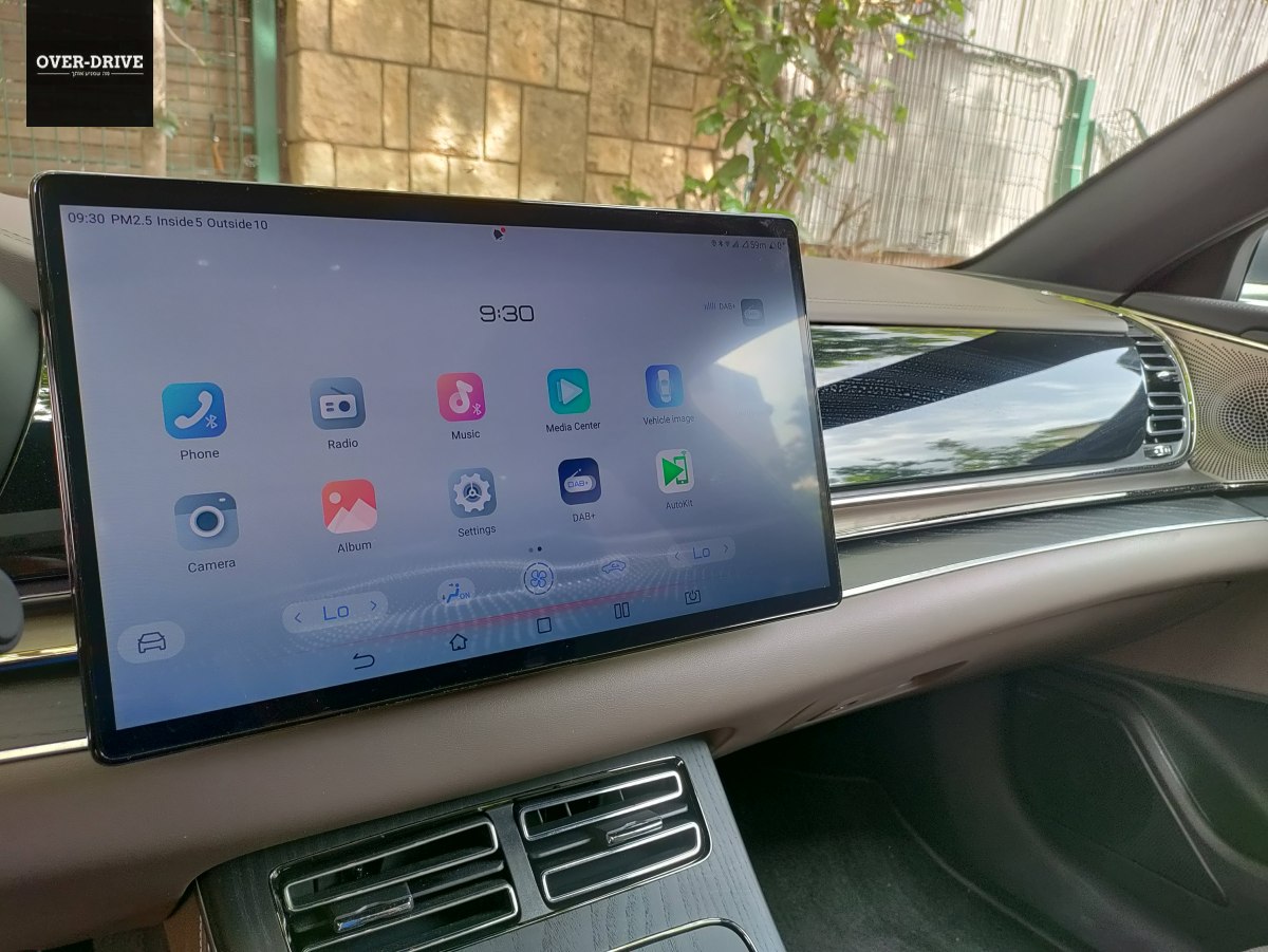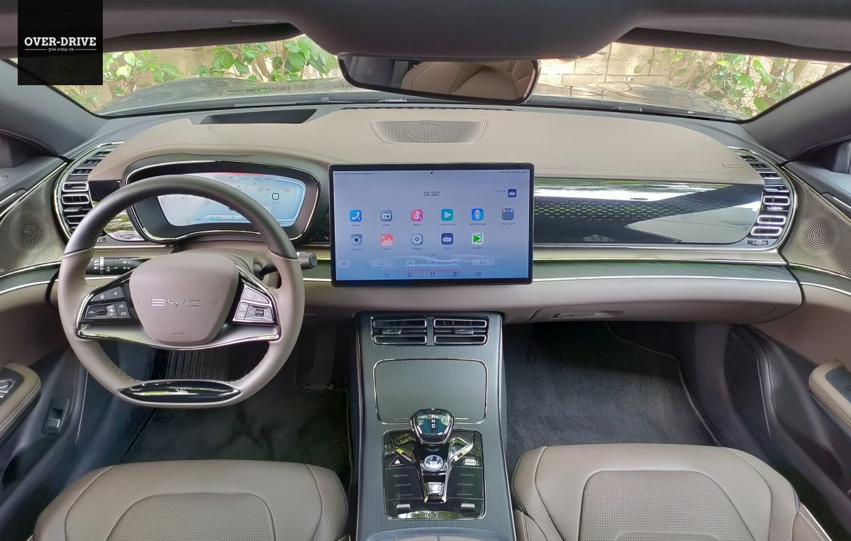 לוח המחוונים, כמקובל כיום בתעשיה, הוא מסך דיגיטלי המספק לא מעט אינפורמציה. נתונים נוספים מוקרנים על השמשה הקדמית, ומסך נוסף מותקן כמובן במרכז הדשבורד. גודלו נדיב למדי ועומד על 15.6 אינץ' וכמקובל ב-BYD הוא מסתובב ב-90 מעלות. נציין כי במצב האנכי שלו, חלקו העליון מסתיר חלק משדה הראיה. מערכת המולטימדיה אינה מציעה בשלב זה תמיכה באנדרואיד אוטו ואפל קארפליי, אך עדכני תוכנה שיאפשרו זאת צפויים להגיע בהמשך.