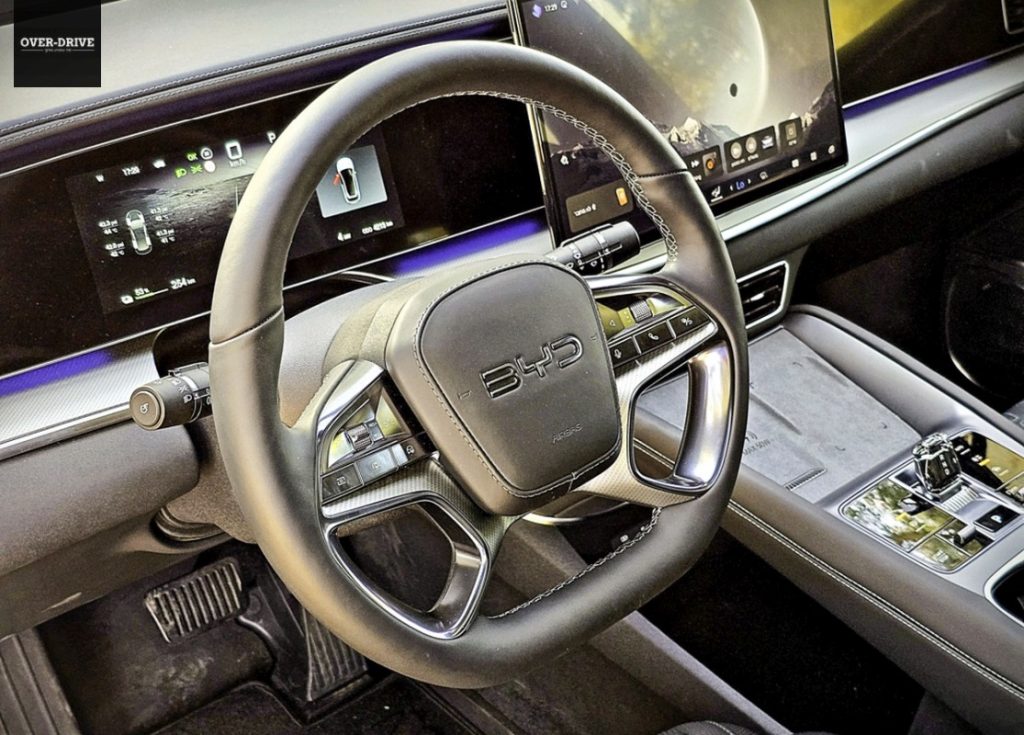 עם זוג מנועים, קדמי ואחורי, המפיקים יחד 530 כ"ס ו-70.4 קג"מ, הסיליון 7, למרות משקל עצמי הנושק ל-2.5 טון, מספקת תאוצות טובות למדי בכל מצב. 4.5 שניות מעמידה ל-100 קמ"ש לחובבי המספרים. אבל איך העסק הזה, במשקל הזה, מתנהל בכביש המפותל? הכביש שנבחר הוא 9977. לא הבחירה הברורה מאליה, אבל חבר סיפר לי הוא נסלל לאחרונה באספלט טרי, כל כך טרי שריח הסלילס עוד נישא באוויר. BYD סיליון 7 טיפסה במעלה ההר מהר בקלילות מעצבנת ומהר יותר מלא מעט מכוניות ספורטיביות עליהן נהגתי לאחרונה. גם התנהגות הכביש היתה טובה, ובפניות ההדוקות הזנב בחר להדק את קו הפניה באמצעות לחיצה על הדוושה הימנית. המתלים האדפטיבים "גילחו" לא מעט ממשקל המכונית, באופן וירטואלי כמובן, ותרמו להיגוי המדוייק, לכניסה לא מהוססת לפניות ולבטחון גבוה מאד מאחורי ההגה. לאותו בטחון תרמה גם העובדה שכל 530 כוחות הסוס יורדים אל הגלגלים רק לאחר שתיישרו את ההגה, מעין מנגנון שמונע מאנשים לא מנוסים לבצע טעויות יקרות.
